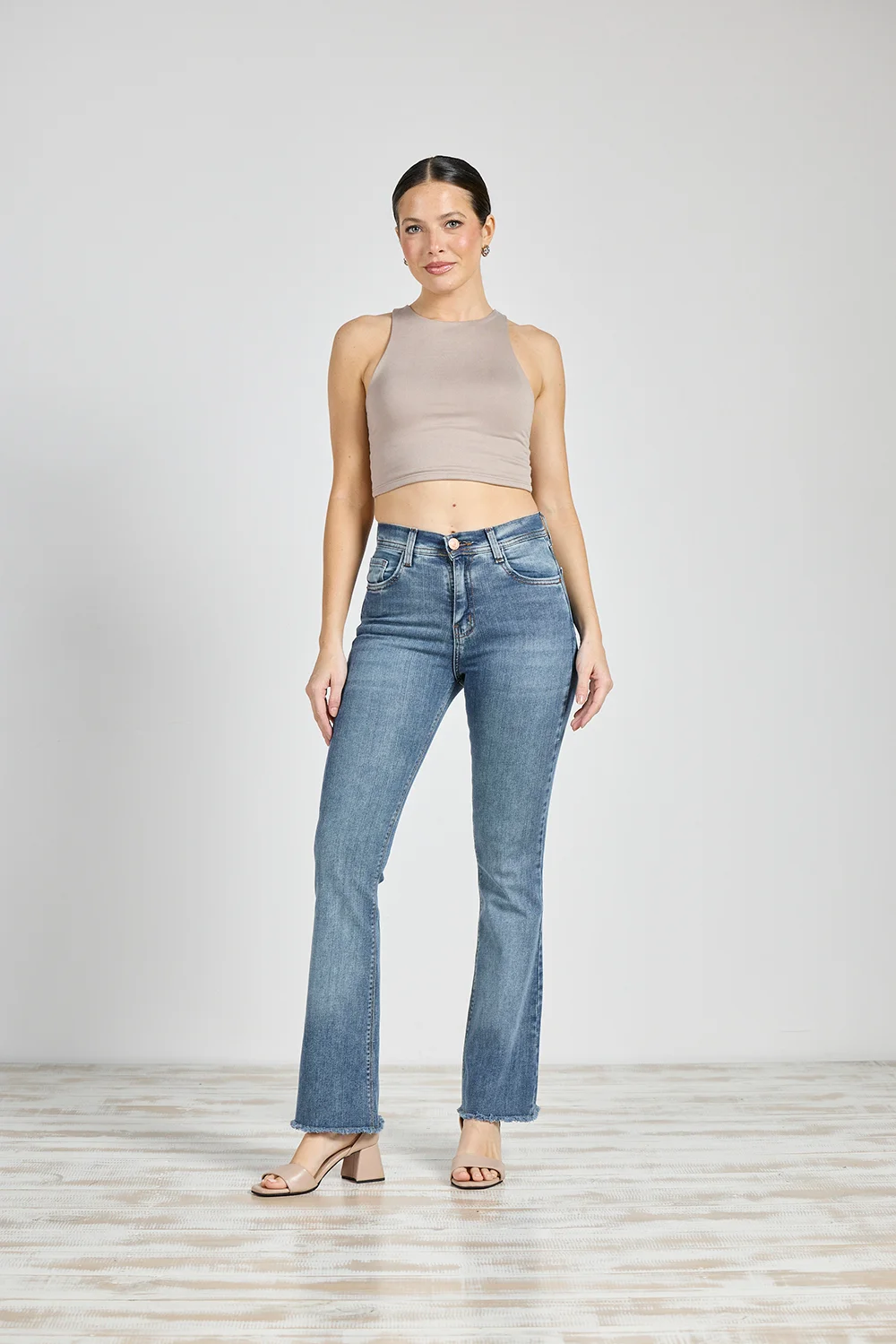 Jeans Cenitho Semi Oxford Stone con bota desflecado Elastizado