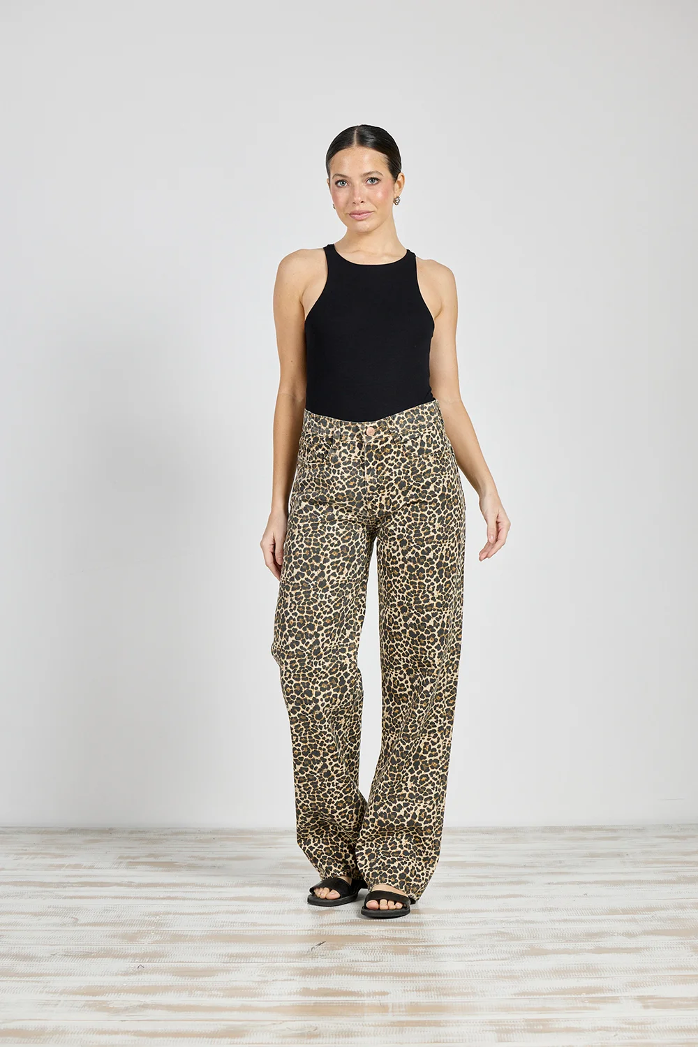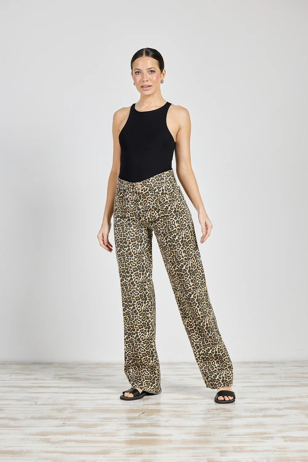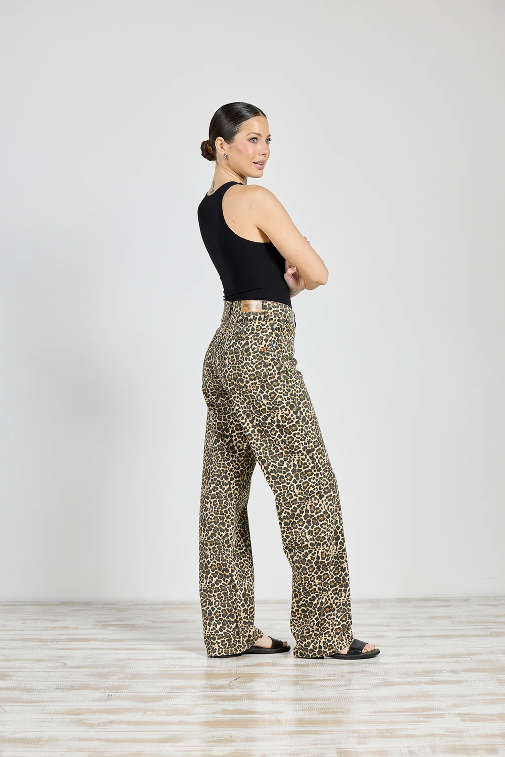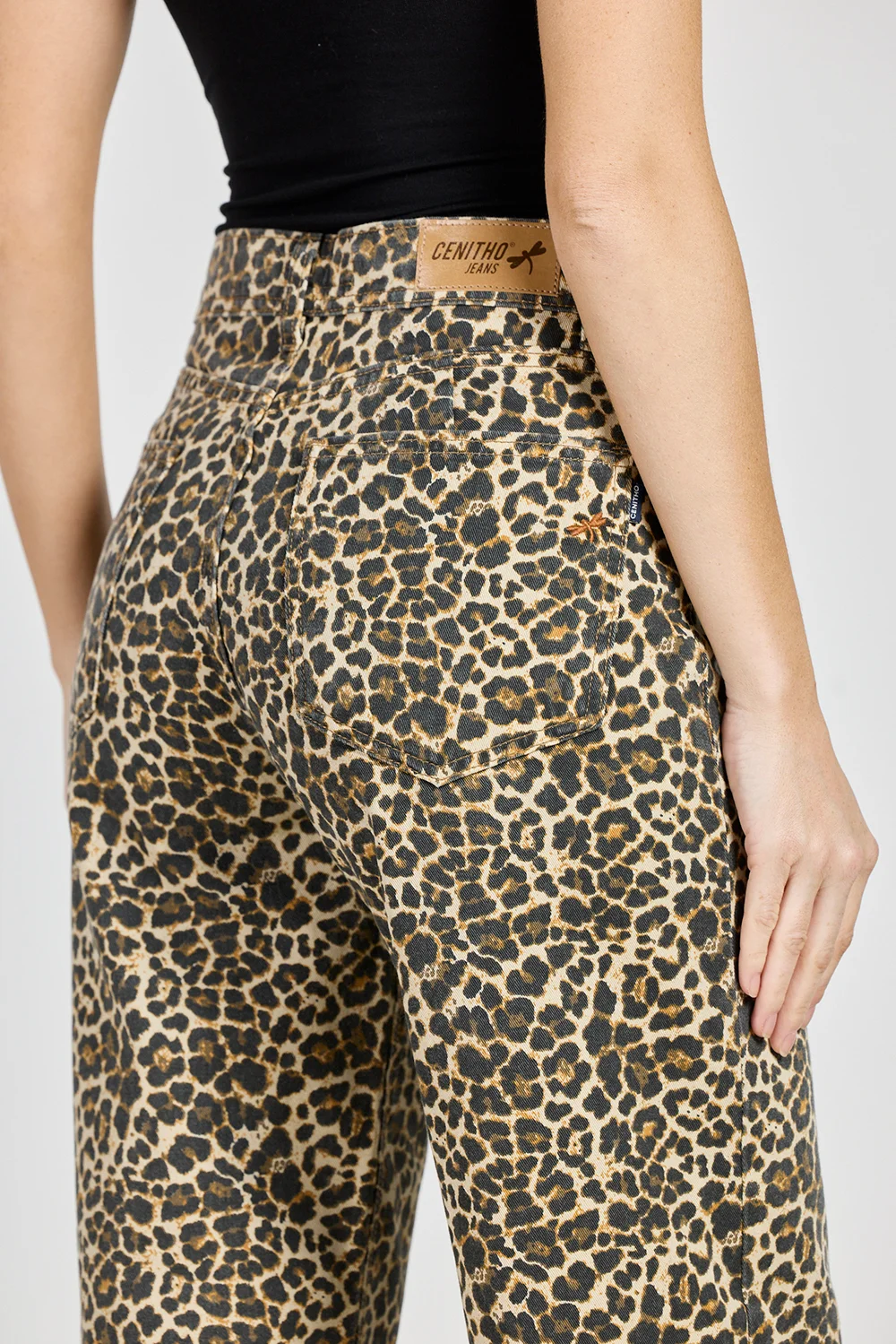 Jeans Cenitho Wide Leg Animal Print Rígido