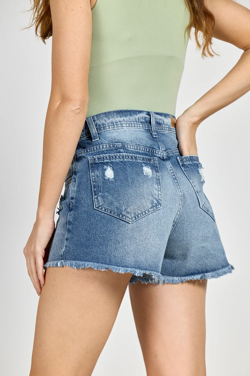 Short Cenitho Con Roturas Deflecado Azul Rígido
